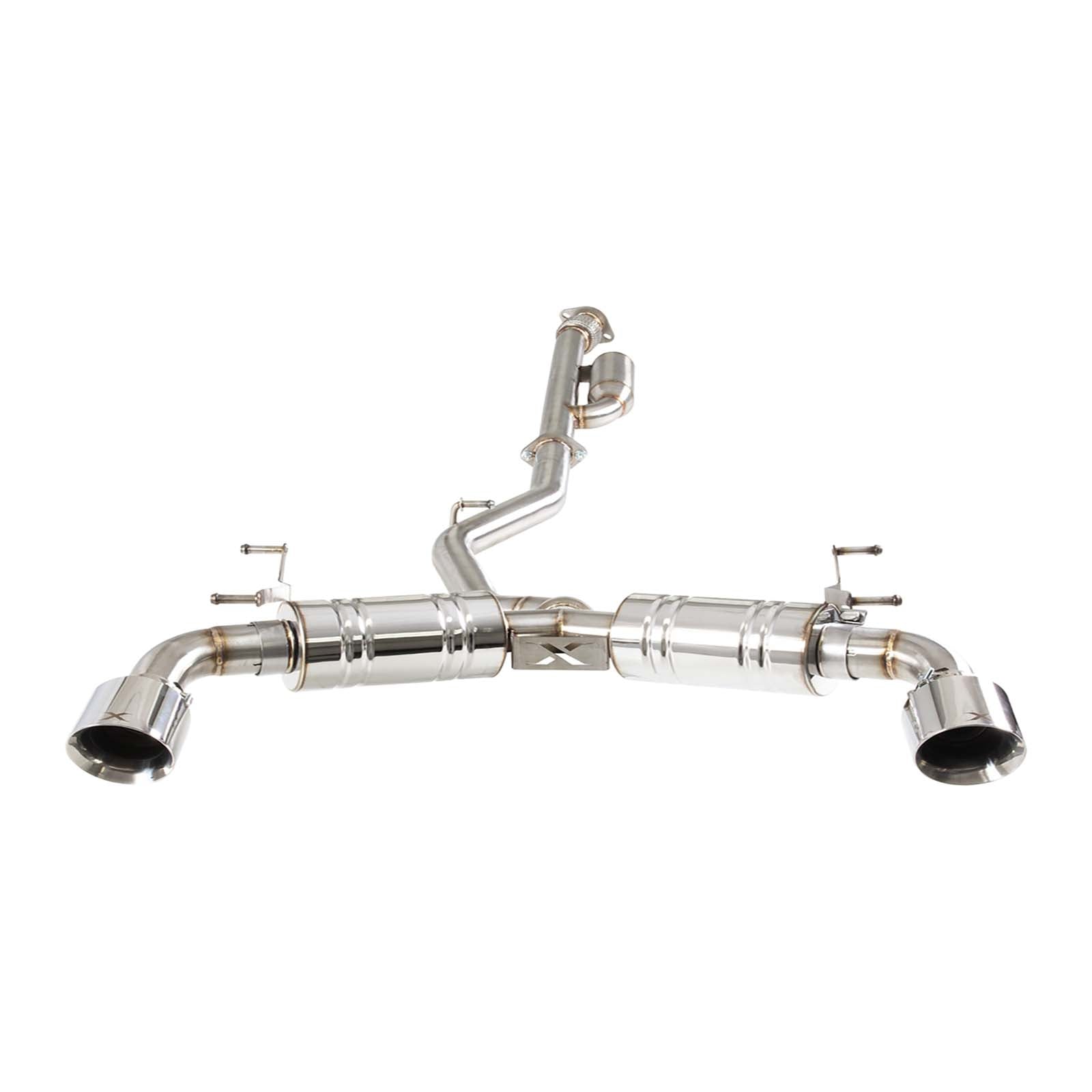Unleash the full potential of your Toyota 86, GR86, Subaru BRZ, or Scion FRS with the latest Xforce 2.5" Cat Back Exhaust System. Crafted from premium 304 brushed stainless steel, this system is engineered to enhance both performance and style, providing the perfect blend of power and sound that complements the vehicle's sporty nature. With mesh-style flex bellows after the connecting flange for optimal flexibility and a drone canister to eliminate unwanted cabin noise, this exhaust system delivers a refined yet exhilarating drive, all while keeping the tone fitting to your vehicle’s character. The rear section features dual-angled resonators, offering not only a deeper, richer exhaust note but also an aggressive look from the rear of the vehicle that matches its dynamic design. For the finishing touch, choose between polished 4.5" tips for a sleek, clean finish, or go bold with the burnt Ti blue look for extra style points. With Xforce, you’re not just upgrading your exhaust—you’re elevating your entire driving experience with the sound, performance, and style that's perfectly suited to your vehicle.