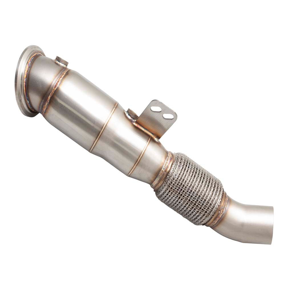Unleash the true potential of your BMW B58 powered vehicle with the Xforce Catted Down Pipe. Engineered for maximum performance, this down pipe features a 4" inlet, ensuring optimal exhaust flow and reduced backpressure. The inclusion of a 200 cell high flow metallic catalytic converter delivers exceptional performance gains. Designed with flexibility in mind, the Xforce Catted Down Pipe is equipped with a durable flex bellows that allows for smooth and precise fitment. The 3 3/8" outlet further enhances exhaust flow, while still bolting up to factory cat back exhaust. Thus ensuring unrestricted power delivery and an exhilarating driving experience. Crafted from high-quality materials and built to last, this down pipe is a perfect upgrade for enthusiasts looking to take their BMW to the next level. Enhance performance, unleash the sound, and experience the thrill of your B58 engine with the Xforce Catted Down Pipe. Upgrade today and elevate your driving experience to new heights.