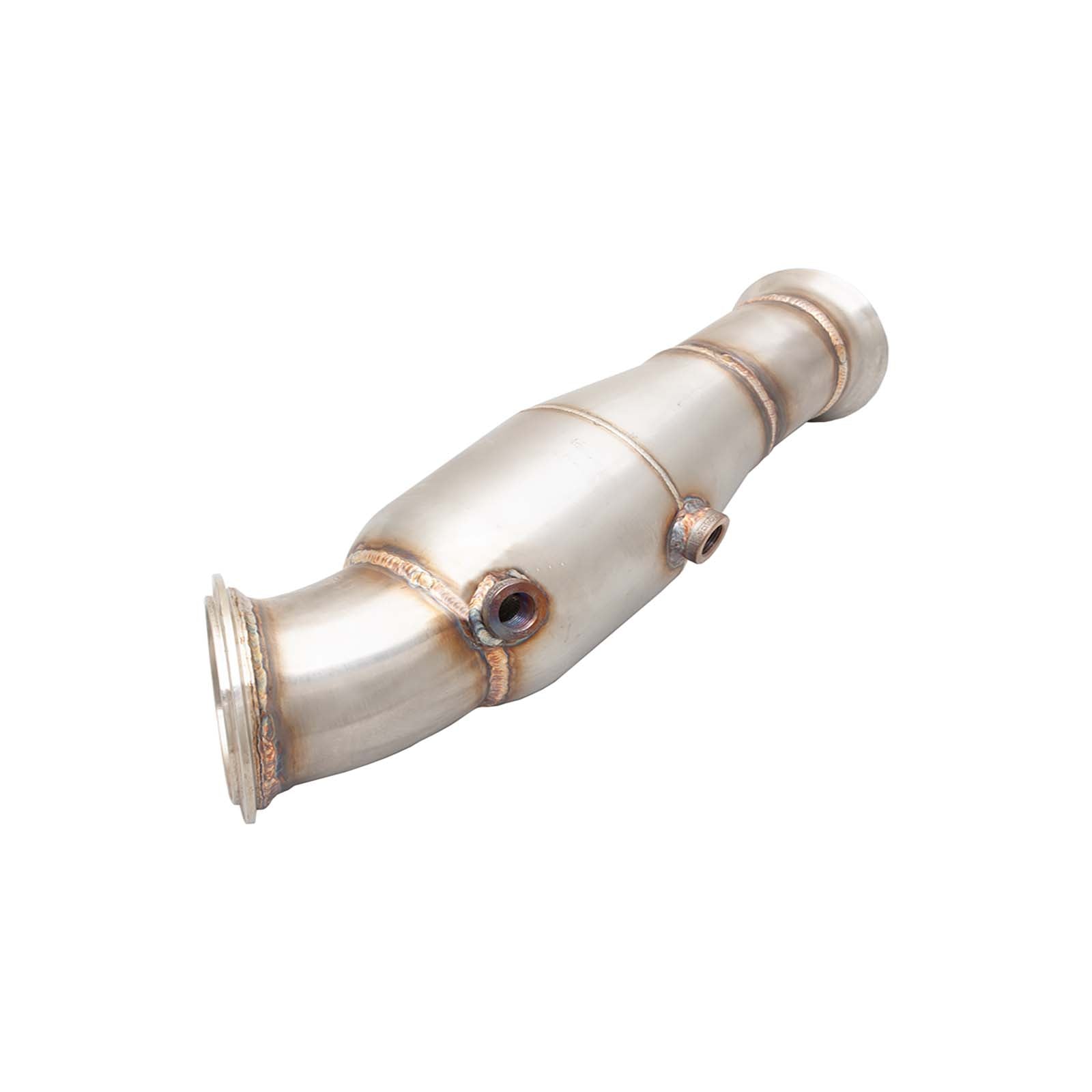 This downpipe is designed to fit BMW N55 powered vehicle with an electronic wastage and a production date from August 2013. Enhance your BMW N55 engine's performance with the Xforce Stainless Steel Downpipe. Featuring a 4" pipe size that reduces to 3" with OEM flange size compatibility, it seamlessly integrates with your factory cat-back exhaust. The inclusion of a 200-cell metallic race cat converter ensures increased exhaust flow while minimizing gas smells. Plus, with O2 sensor ports in the standard location, installation is a breeze. Upgrade today and experience improved throttle response and power gains like never before.